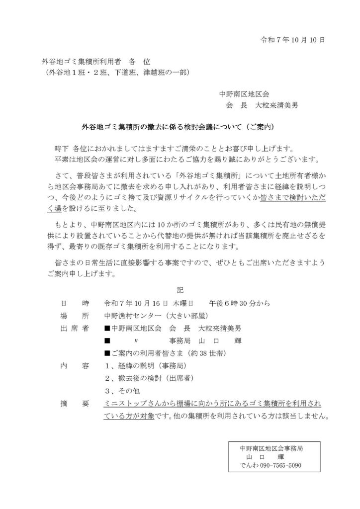 - 情報2025-10-08外谷地ゴミ集積所検討会議の開催について
