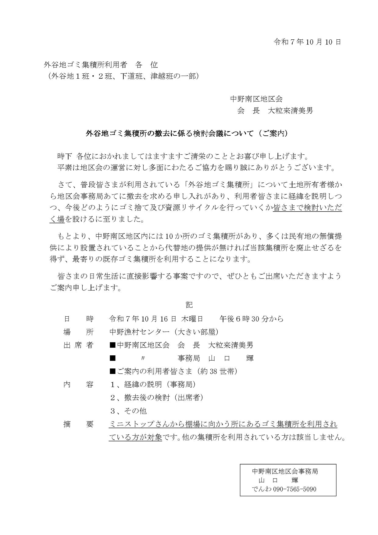 - 情報2025-10-08外谷地ゴミ集積所検討会議の開催について