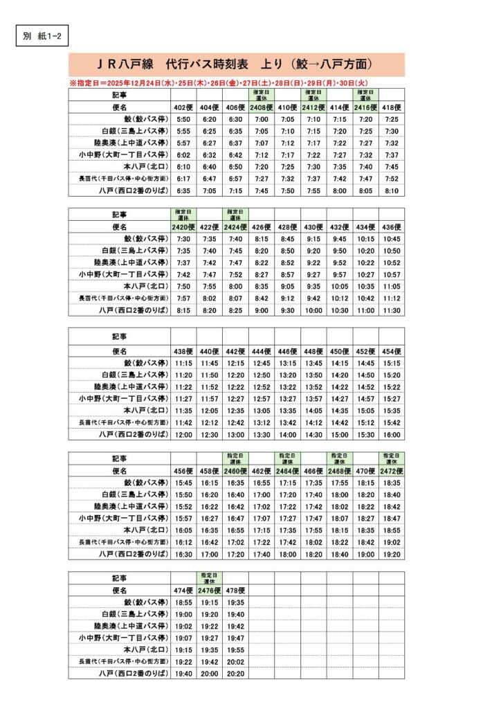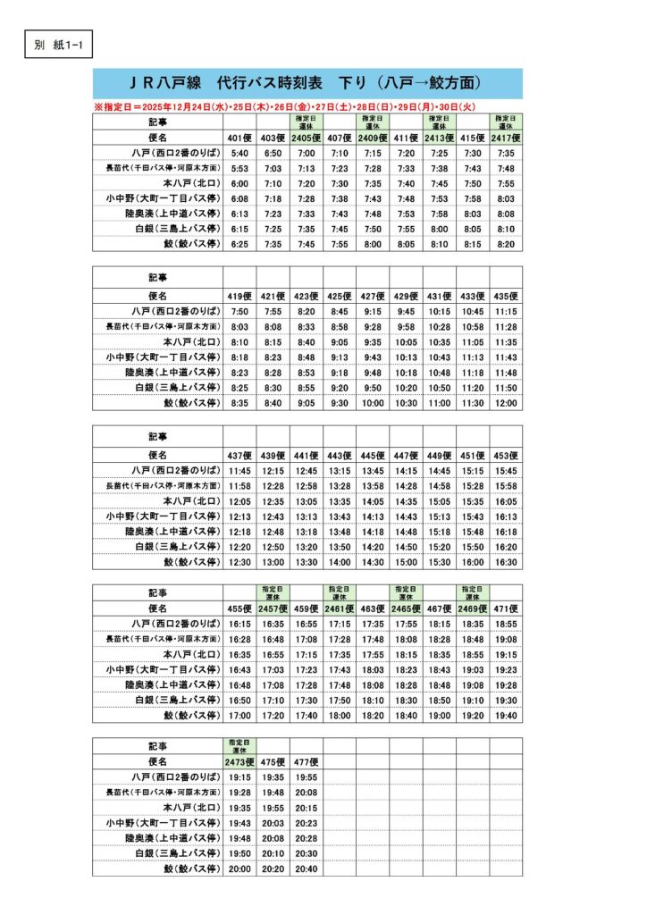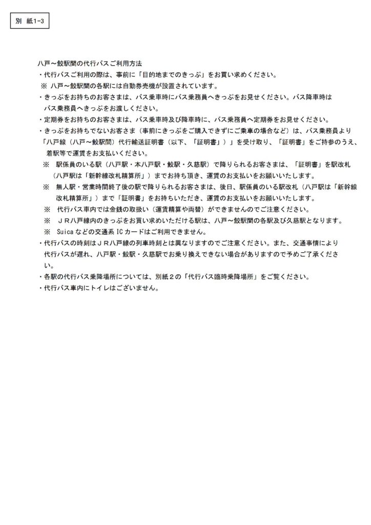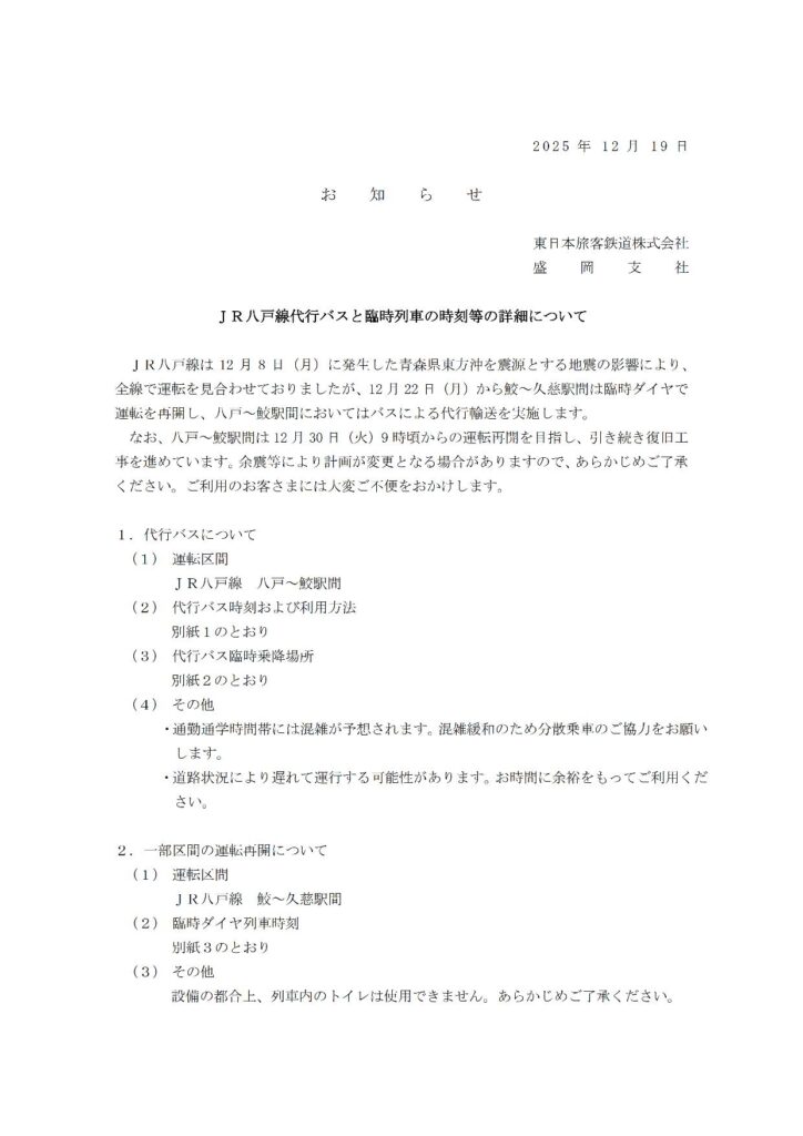 JR八戸線 臨時ダイヤについて